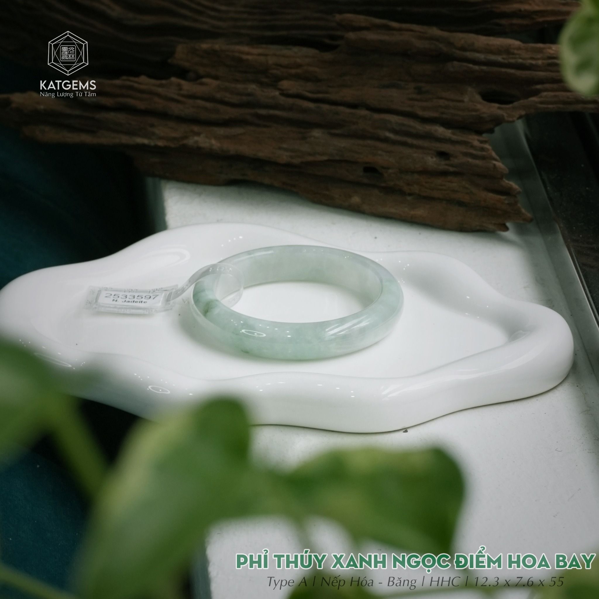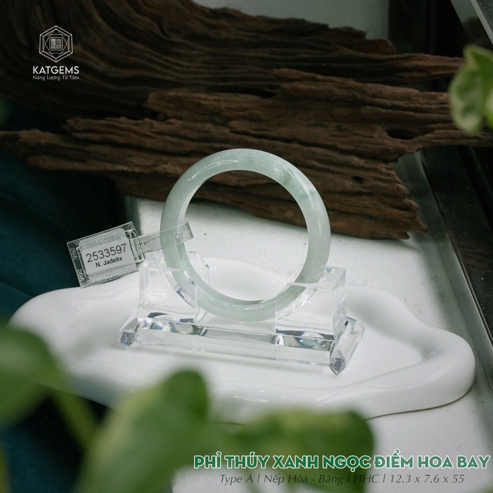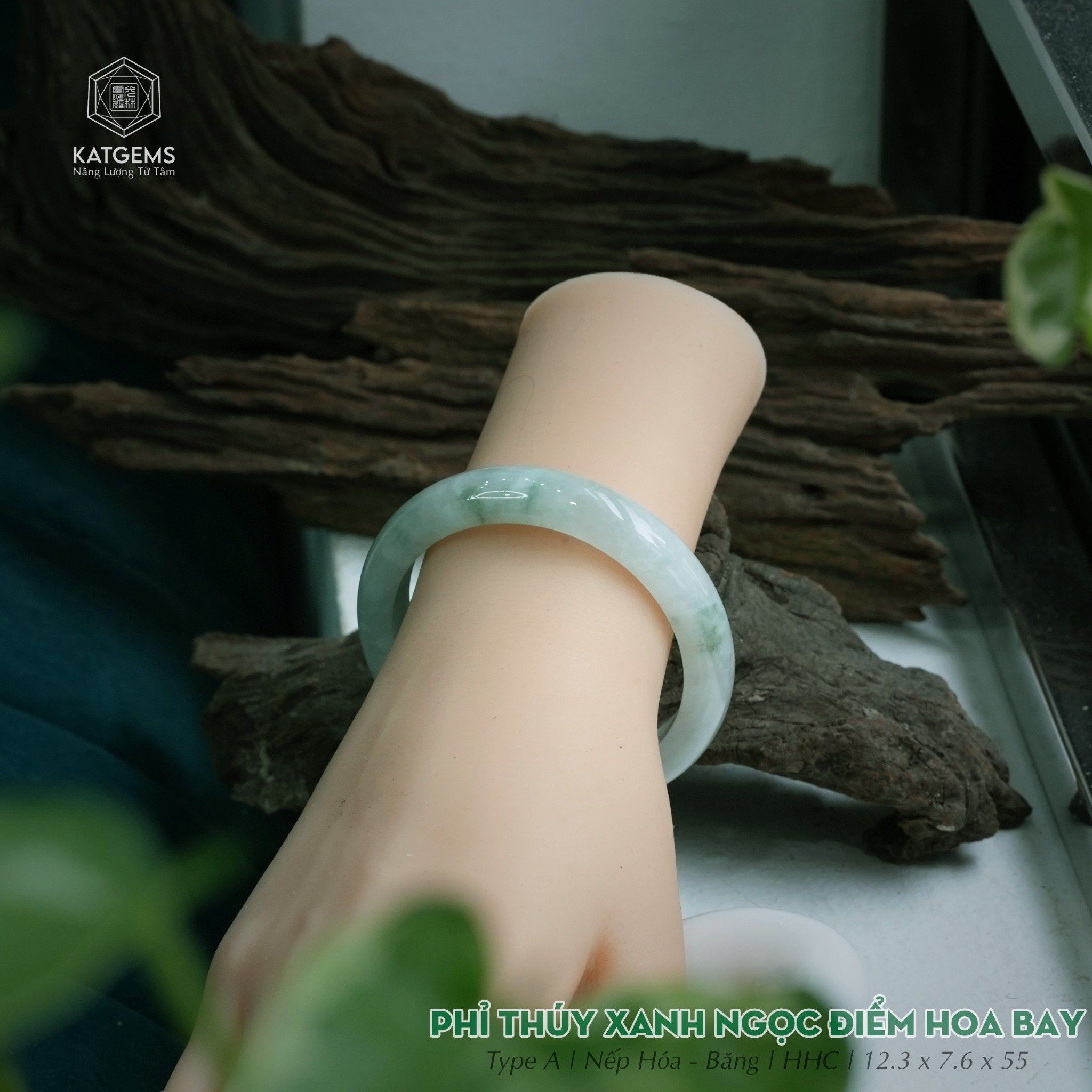 Vòng Khối Ngọc Phỉ Thúy Xanh Ngọc Điểm Hoa Bay Cao Cấp Bản Hẹ 12.3 x 7.6 x 55 (Không Kén Mệnh) 2533597