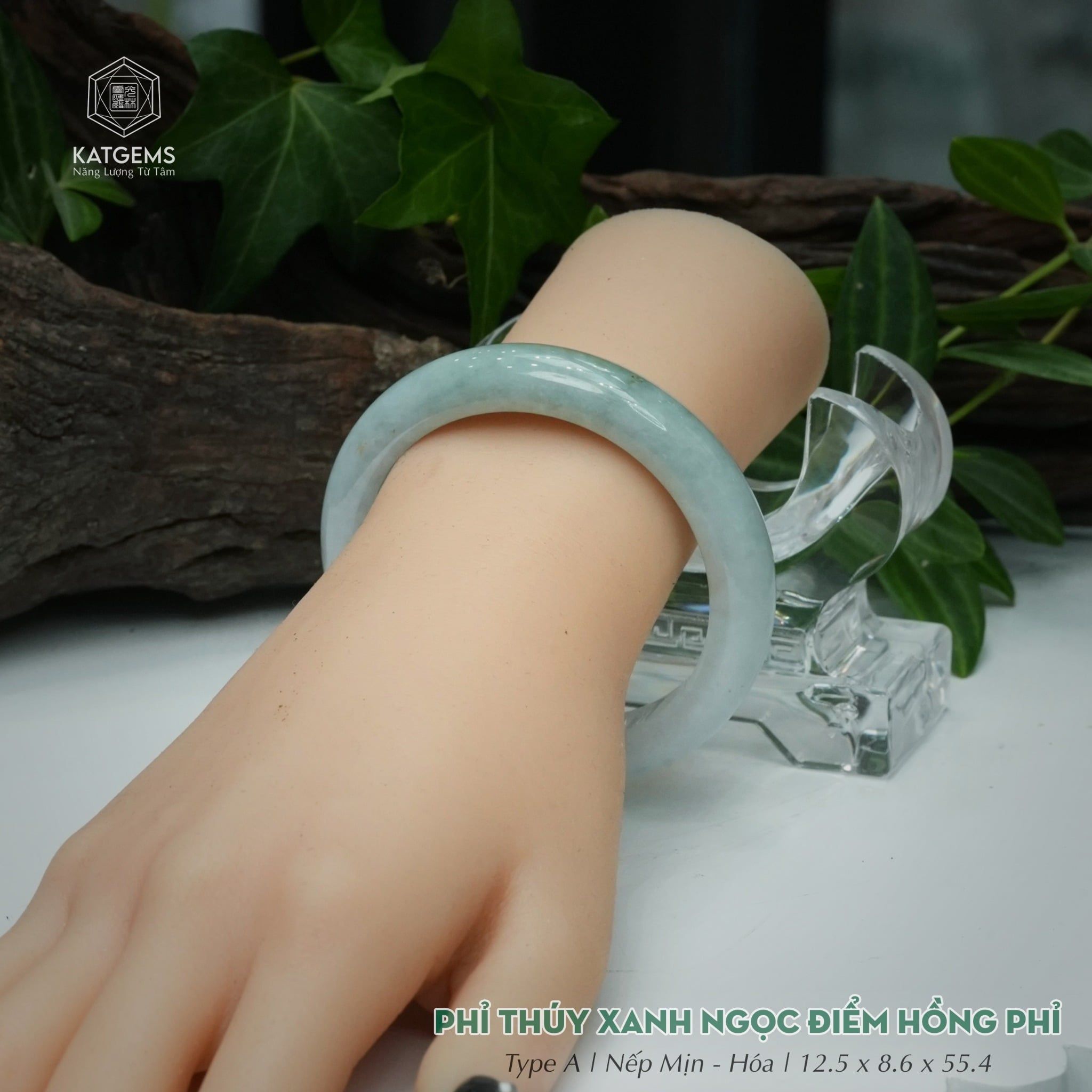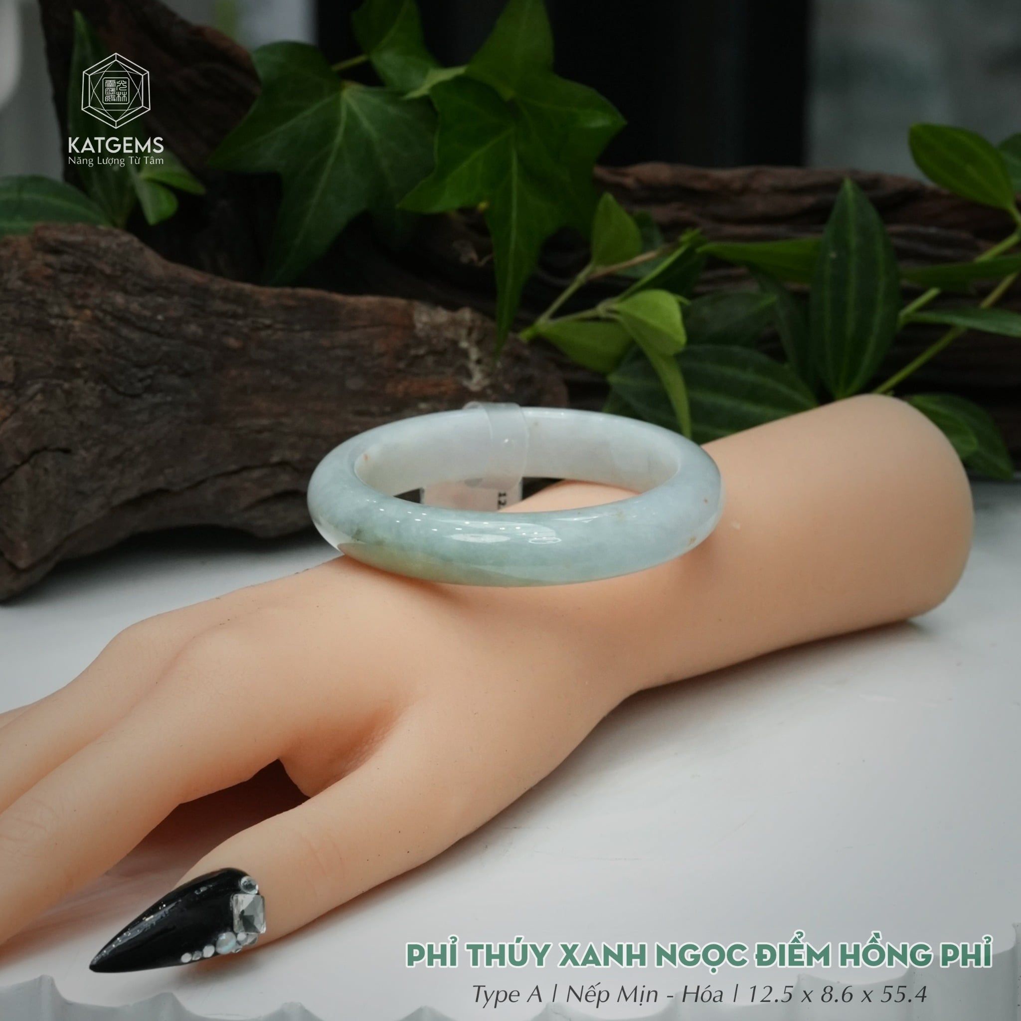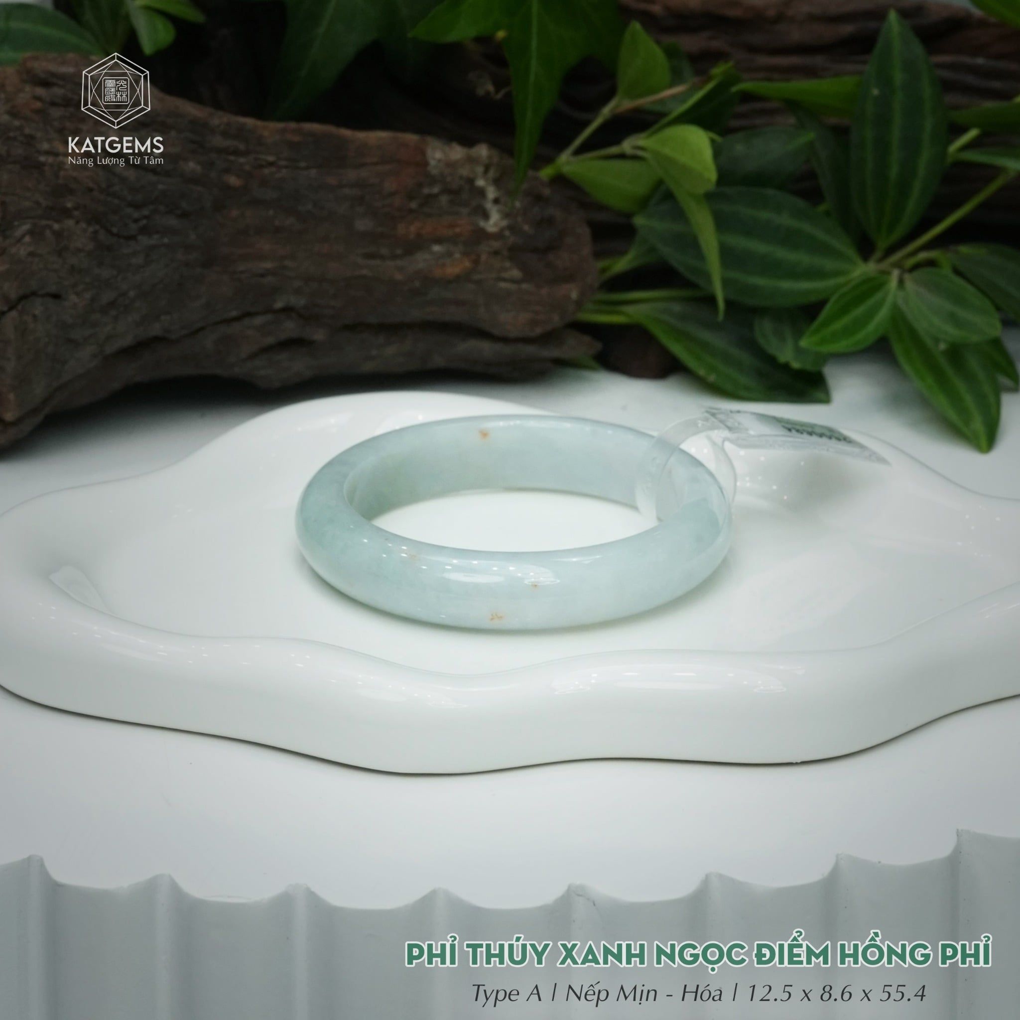 Vòng Khối Ngọc Phỉ Thúy Xanh Ngọc Điểm Hồng Phỉ Cao Cấp Bản Hẹ 12.5 x 8.6 x 55.4 (Không Kén Mệnh) 2600684