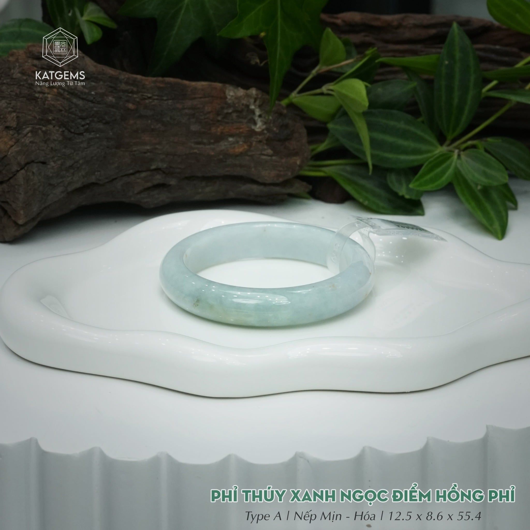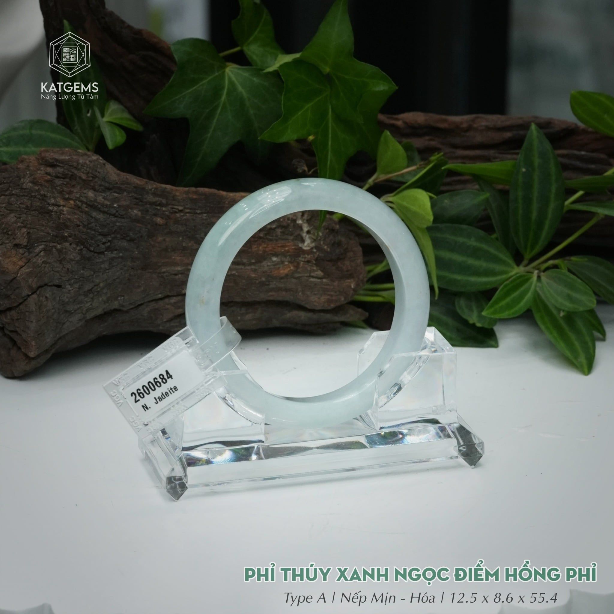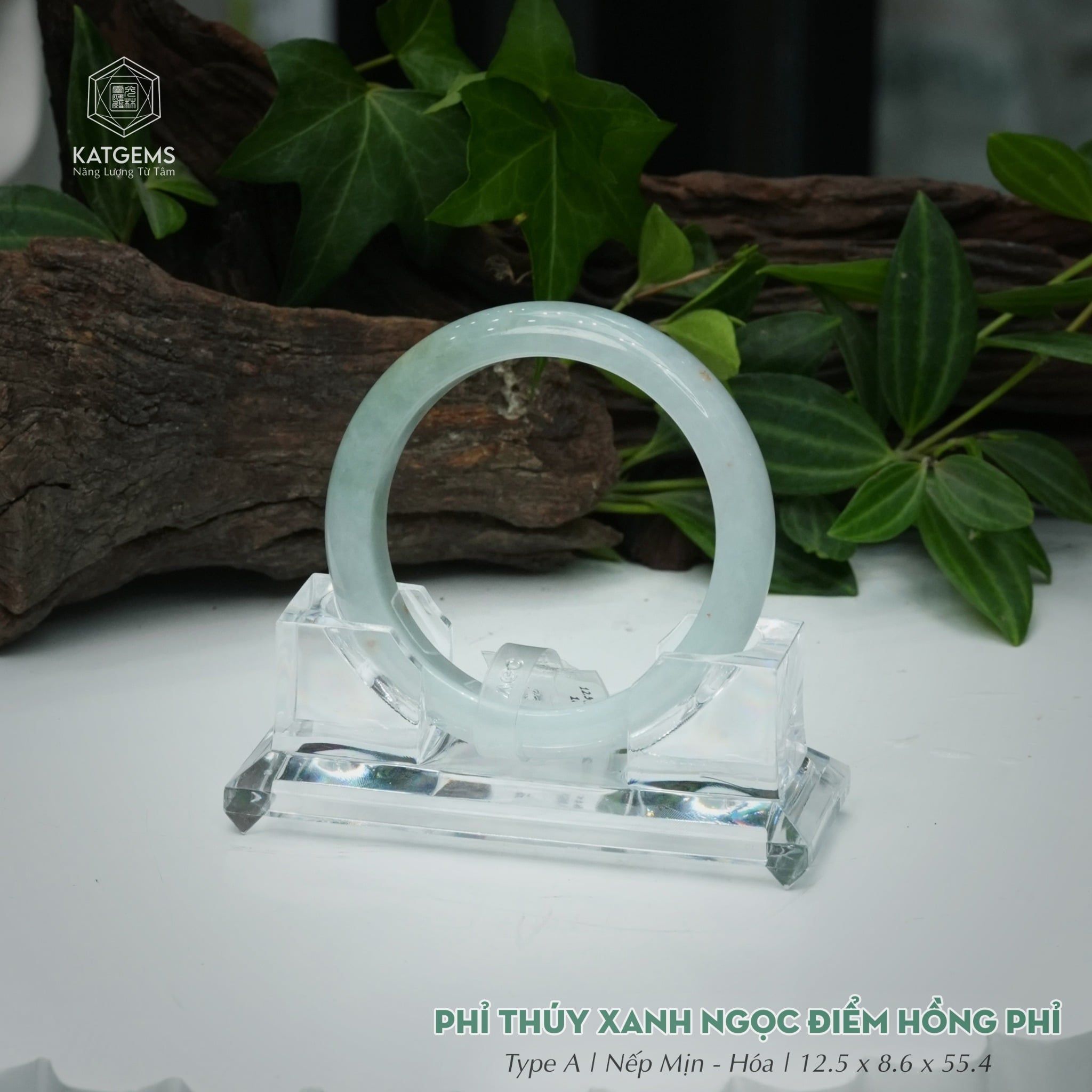 Vòng Khối Ngọc Phỉ Thúy Xanh Ngọc Điểm Hồng Phỉ Cao Cấp Bản Hẹ 12.5 x 8.6 x 55.4 (Không Kén Mệnh) 2600684
