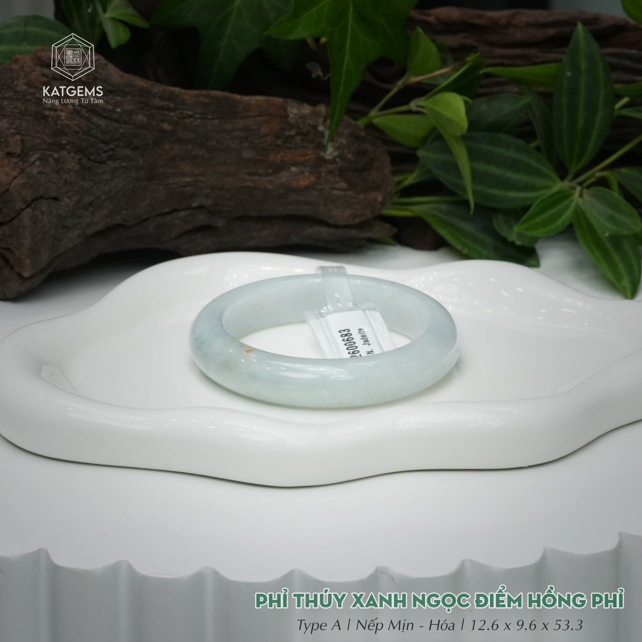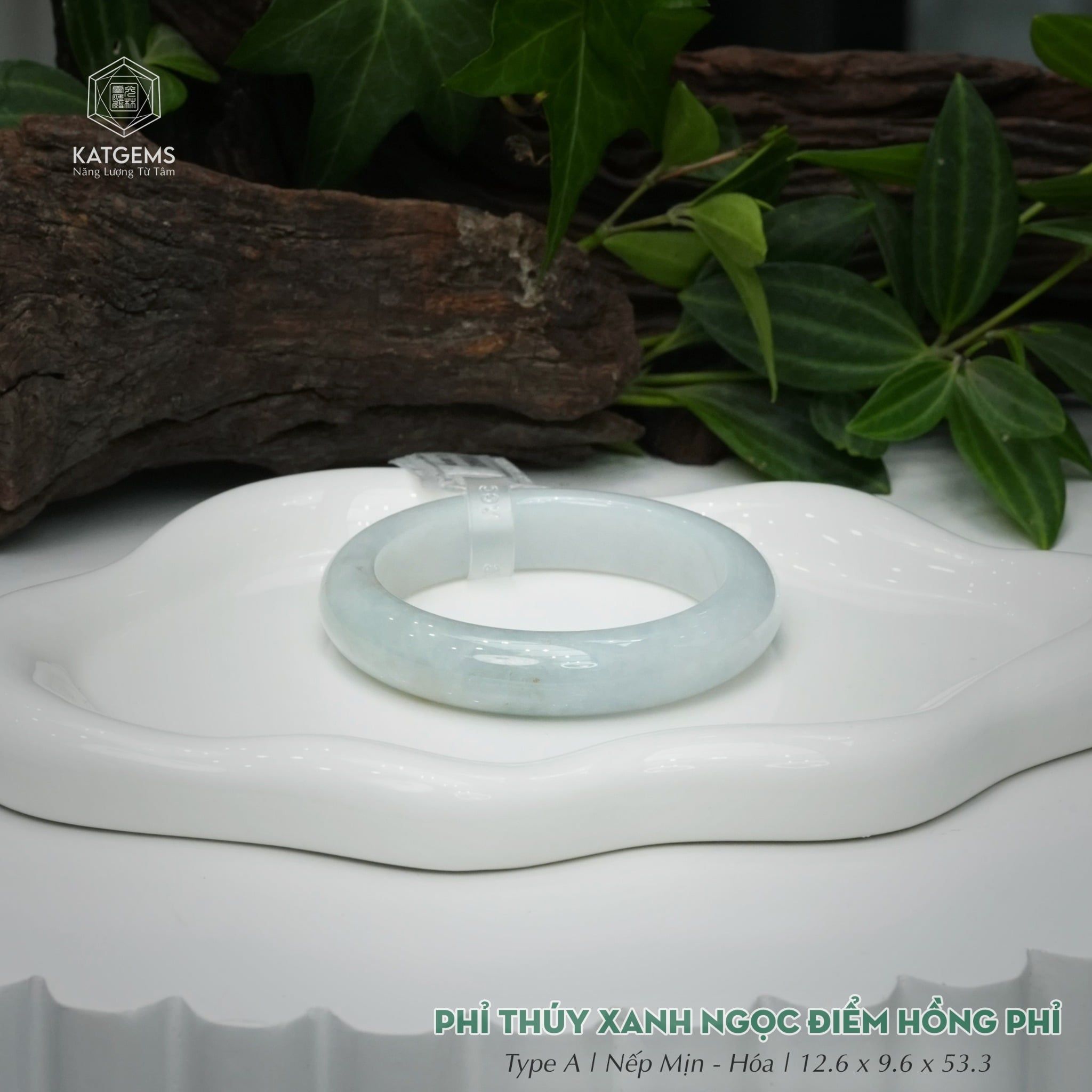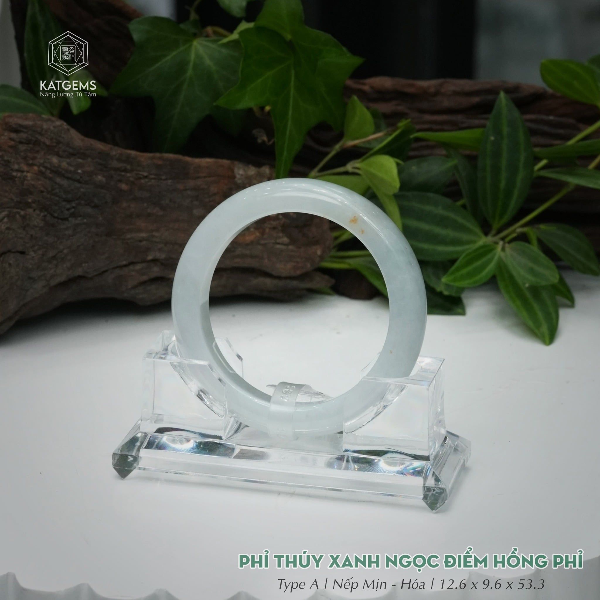 Vòng Khối Ngọc Phỉ Thúy Xanh Ngọc Điểm Hồng Phỉ Cao Cấp Bản Hẹ 12.6 x 9.6 x 53.3 (Không Kén Mệnh) 2600683