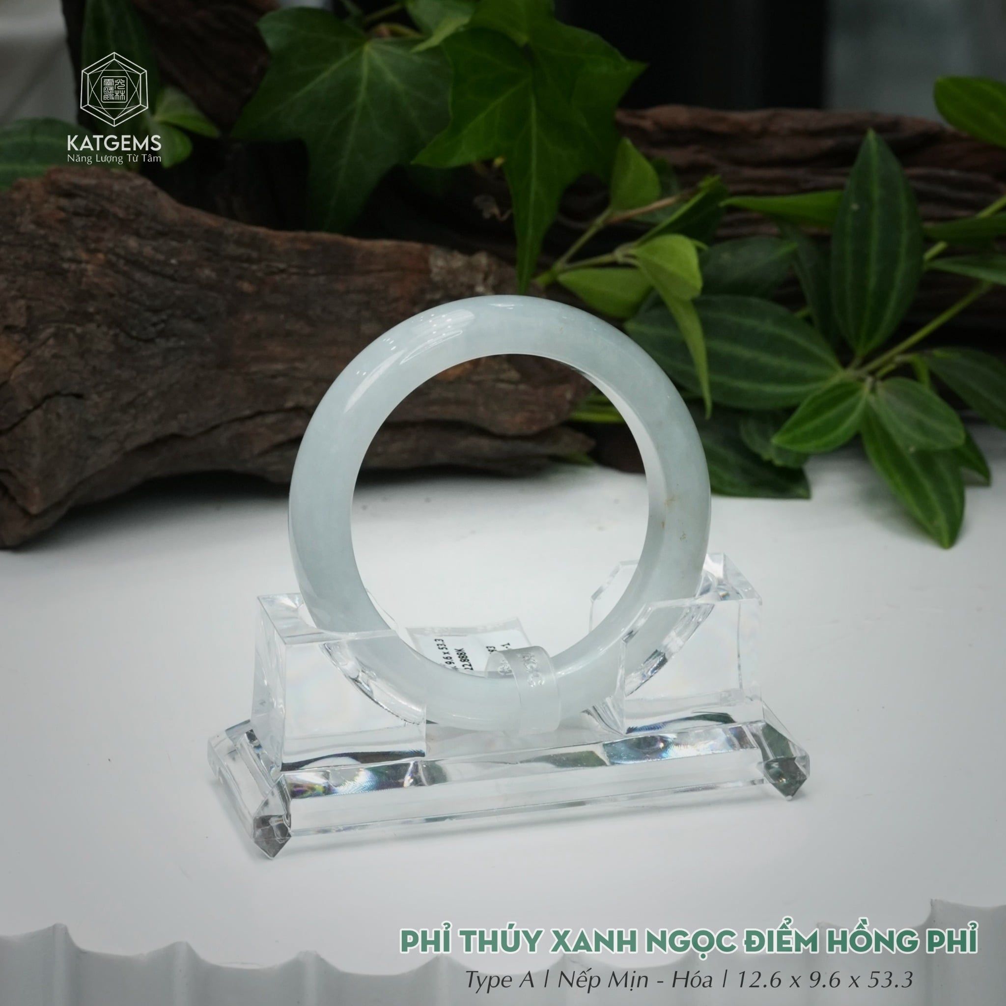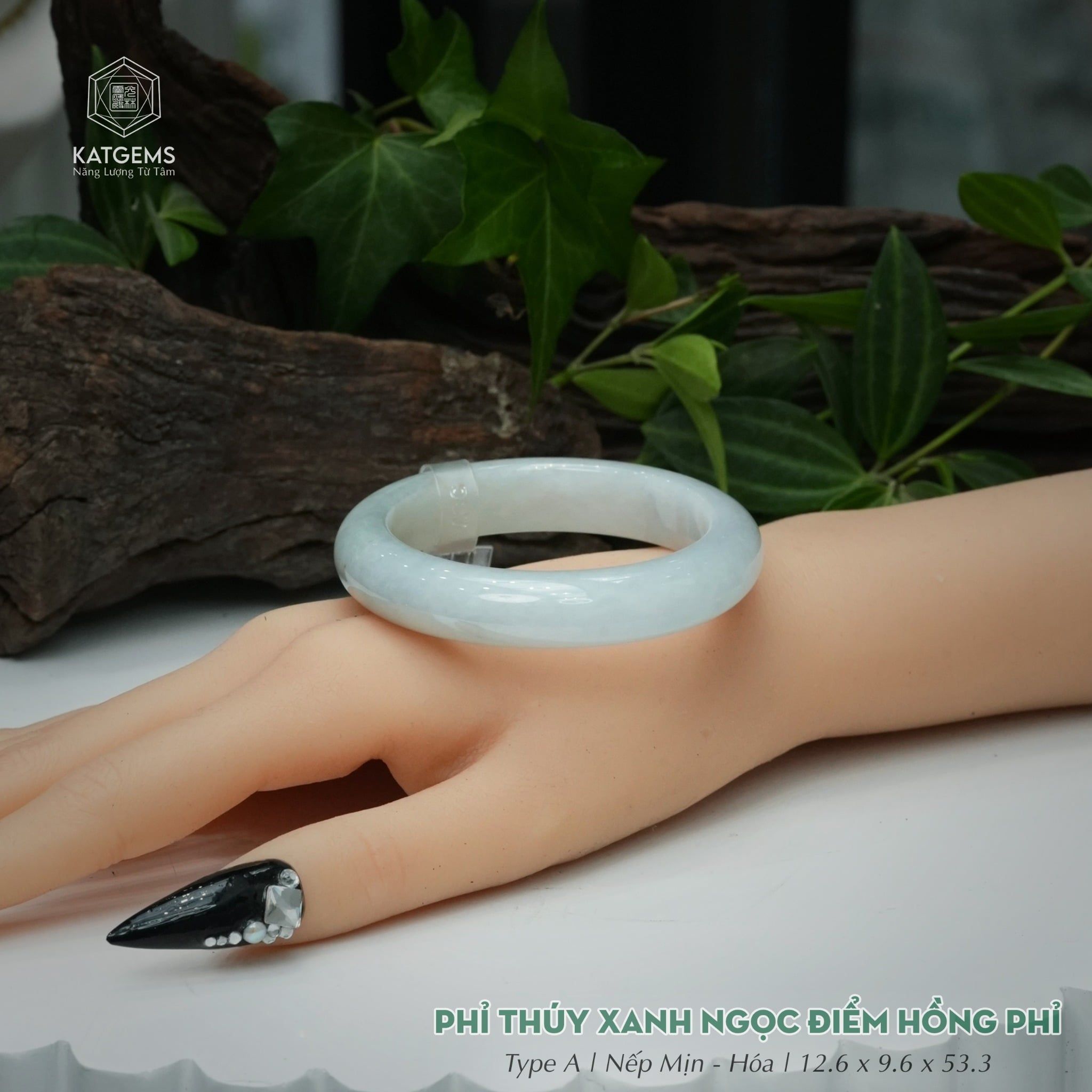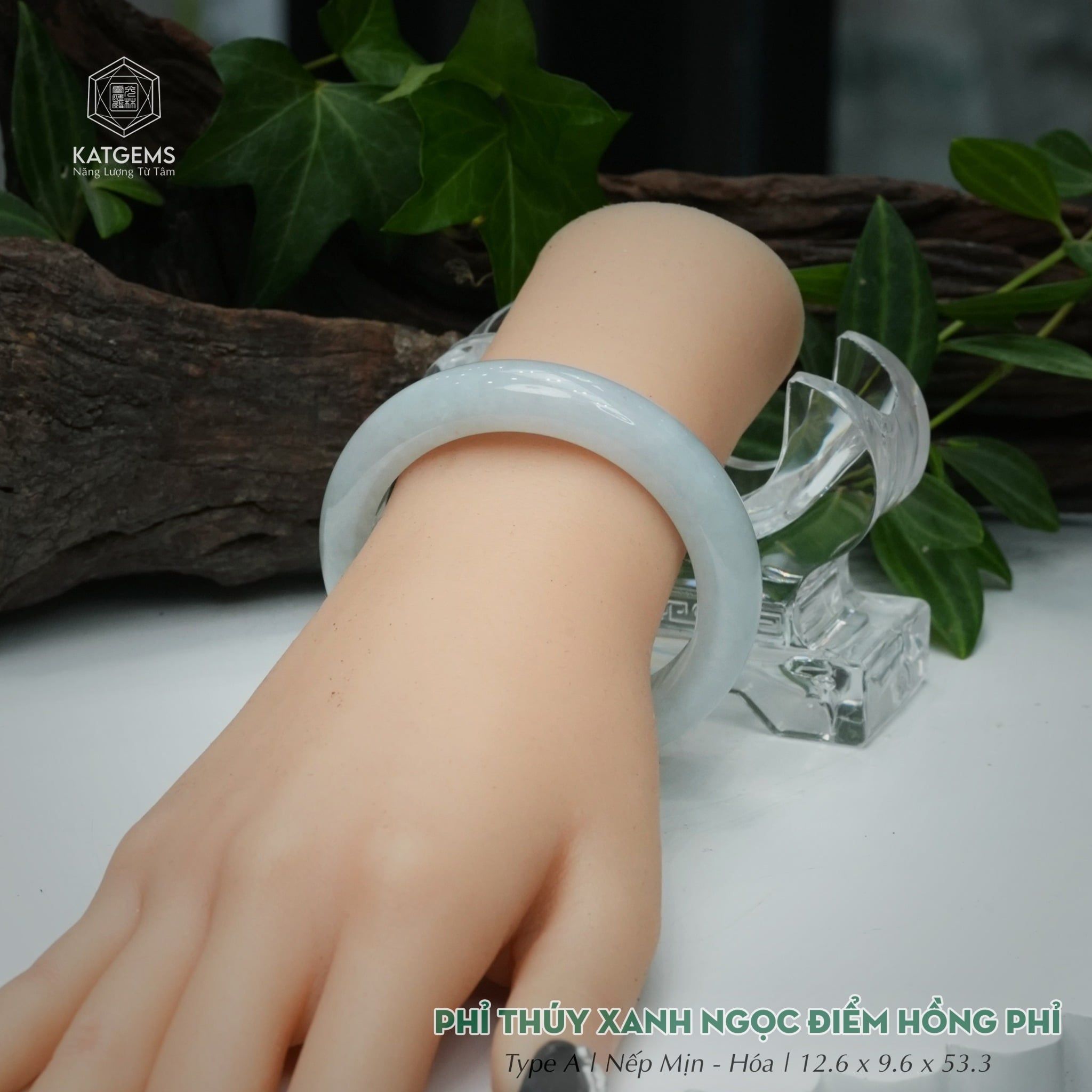 Vòng Khối Ngọc Phỉ Thúy Xanh Ngọc Điểm Hồng Phỉ Cao Cấp Bản Hẹ 12.6 x 9.6 x 53.3 (Không Kén Mệnh) 2600683