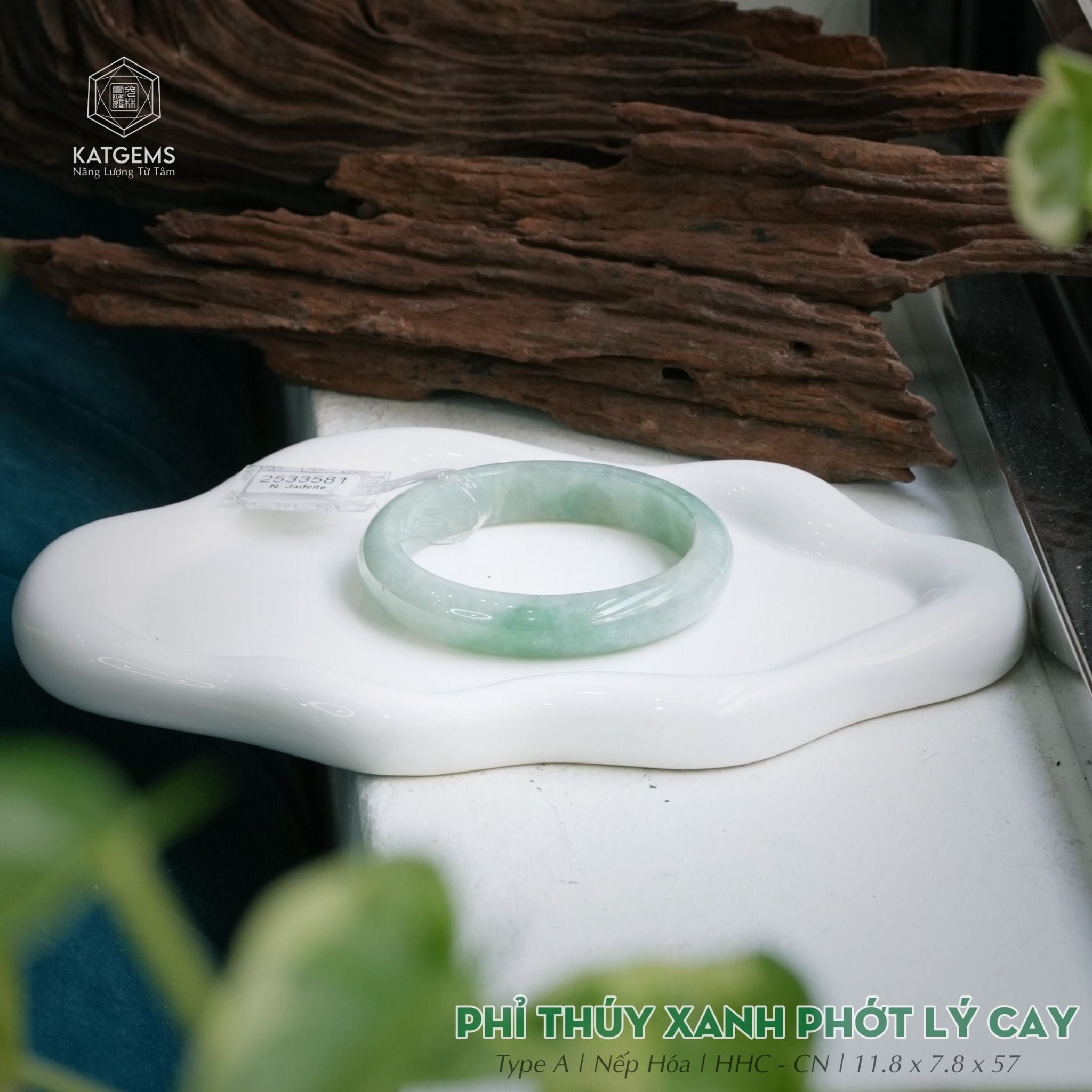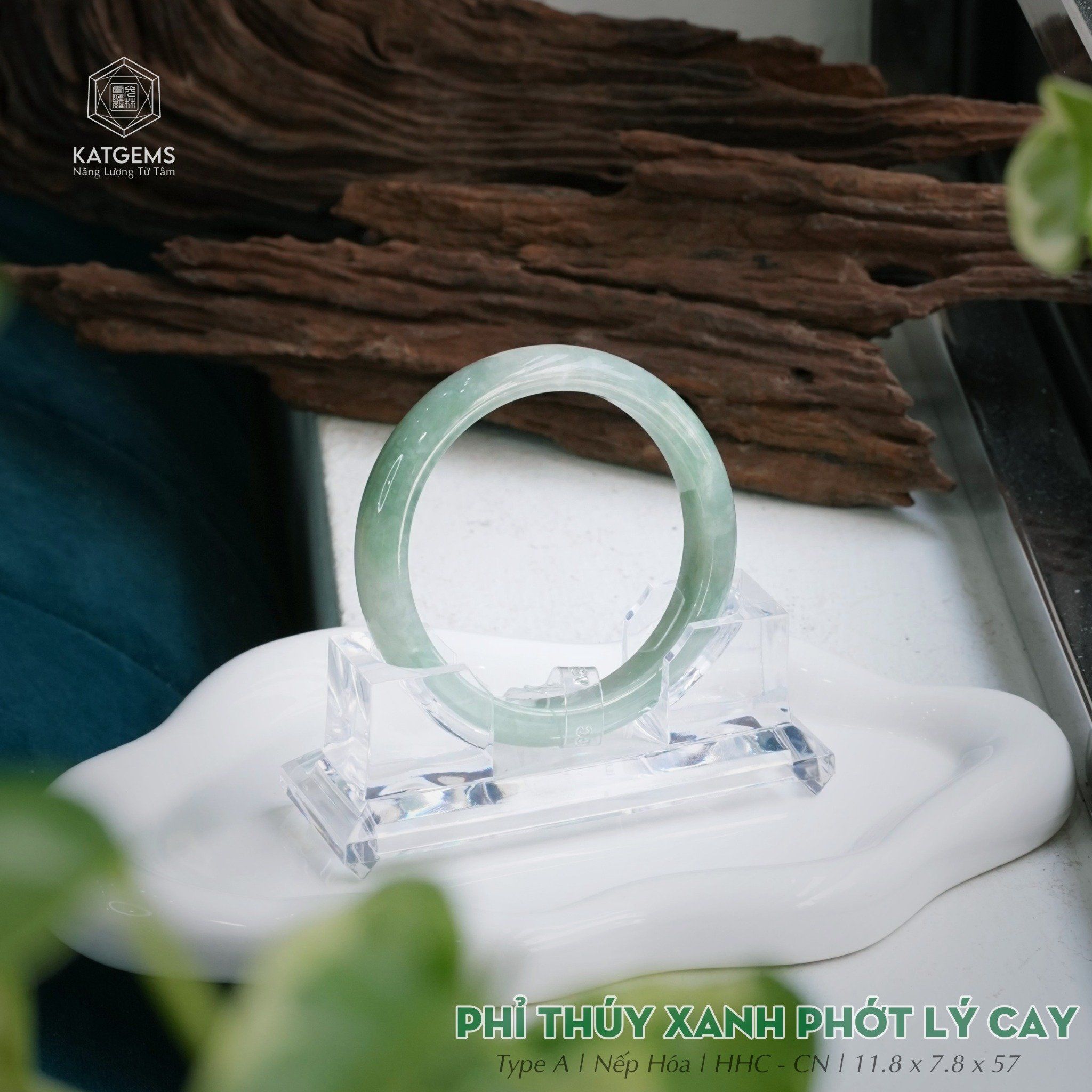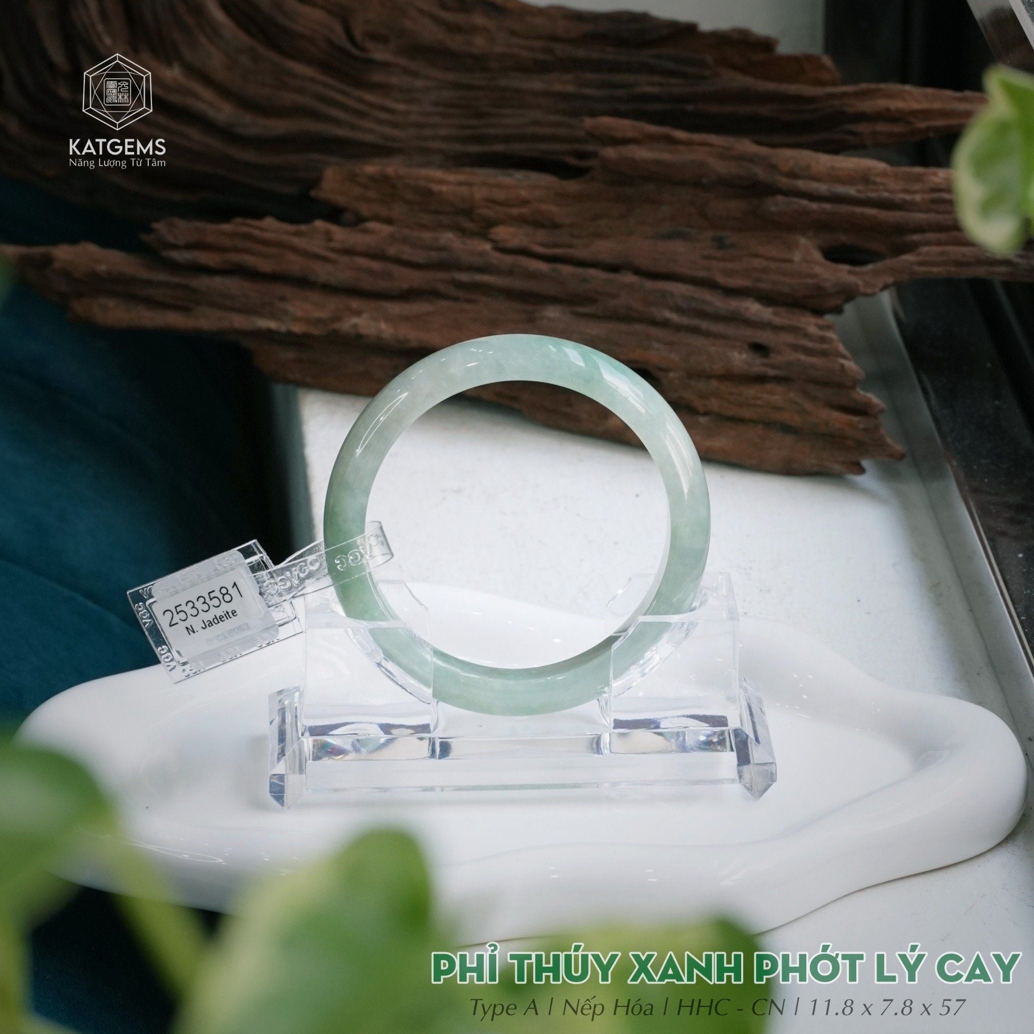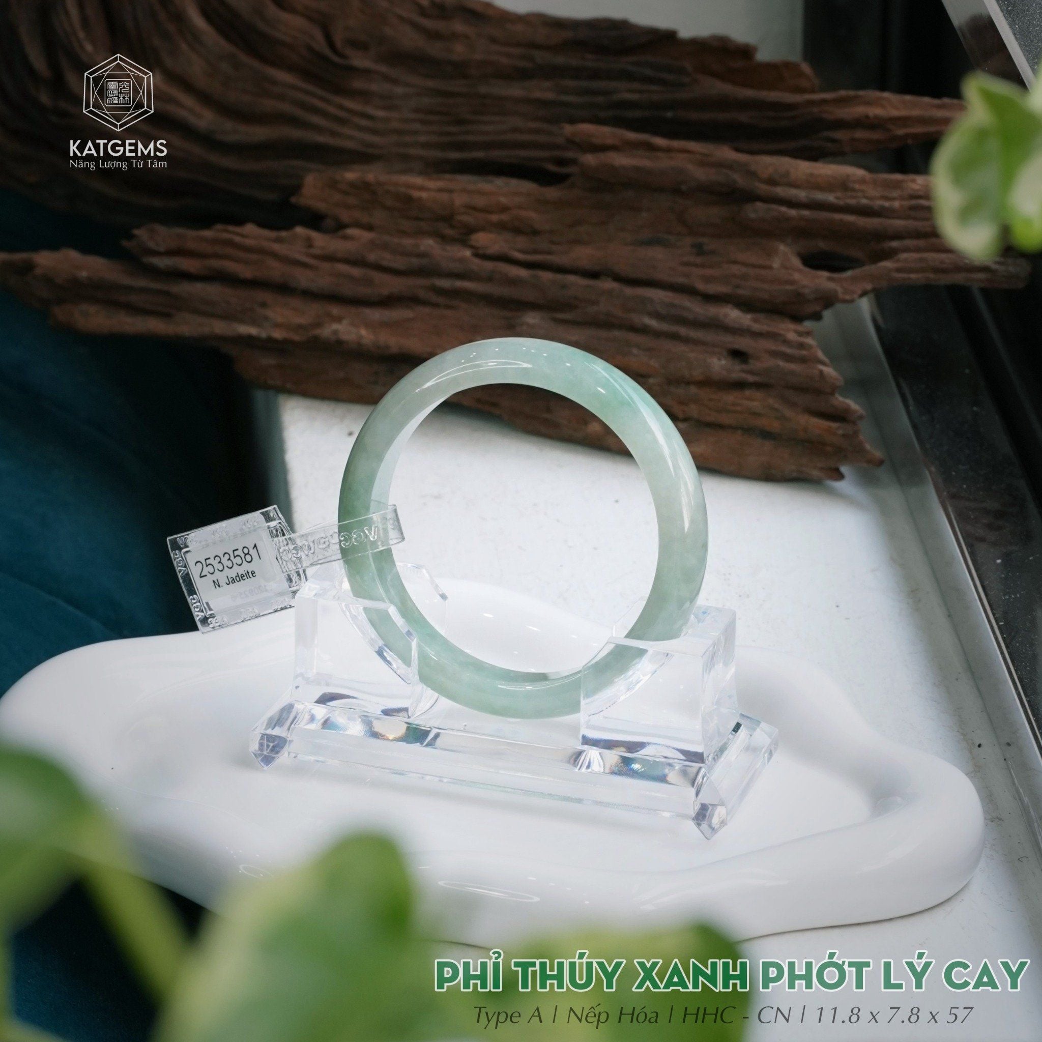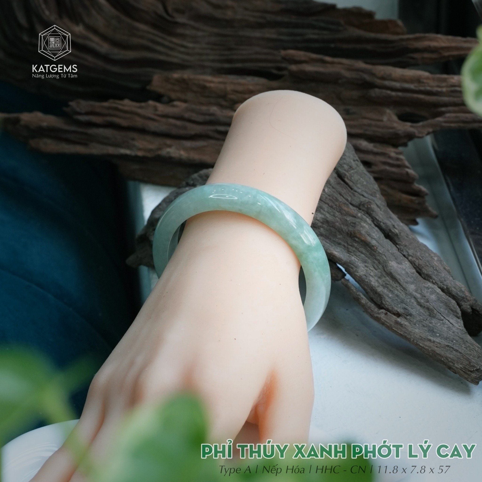 Vòng Khối Ngọc Phỉ Thúy Xanh Phớt Lý Cay Cao Cấp Bản Hẹ 11.8 x 7.8 x 57 (Không Kén Mệnh) 2533581