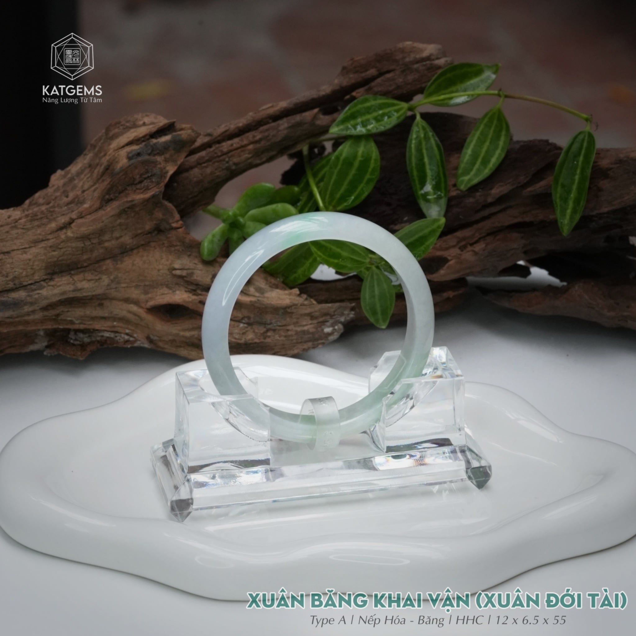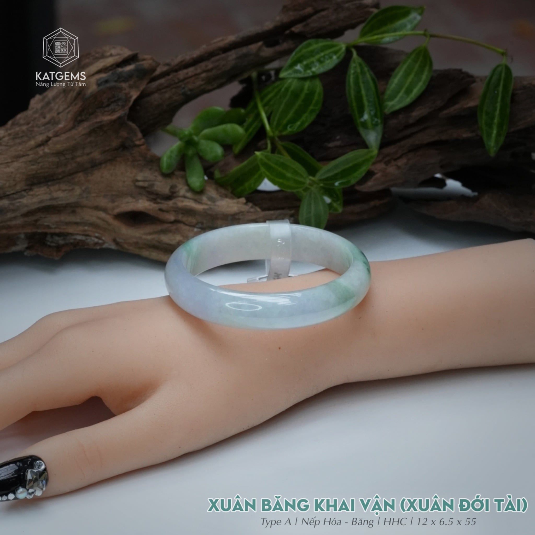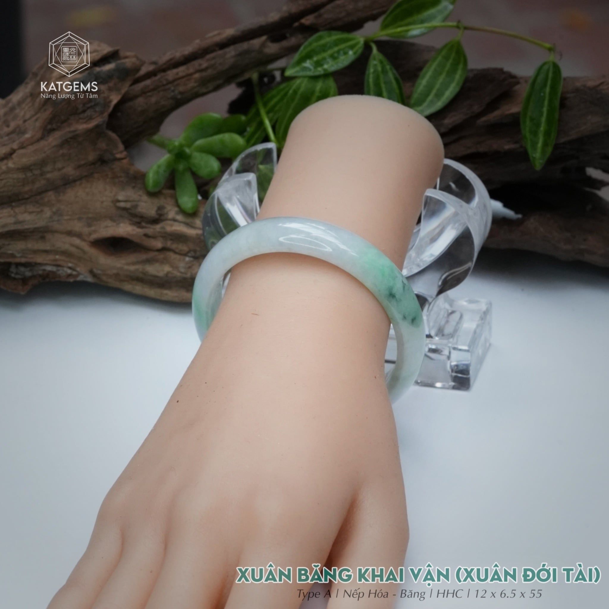 Vòng Khối Ngọc Phỉ Thúy Xuân Băng Khai Vận Cao Cấp Bản Hẹ 12 x 6.5 x 55 (Không Kén Mệnh) 2544339