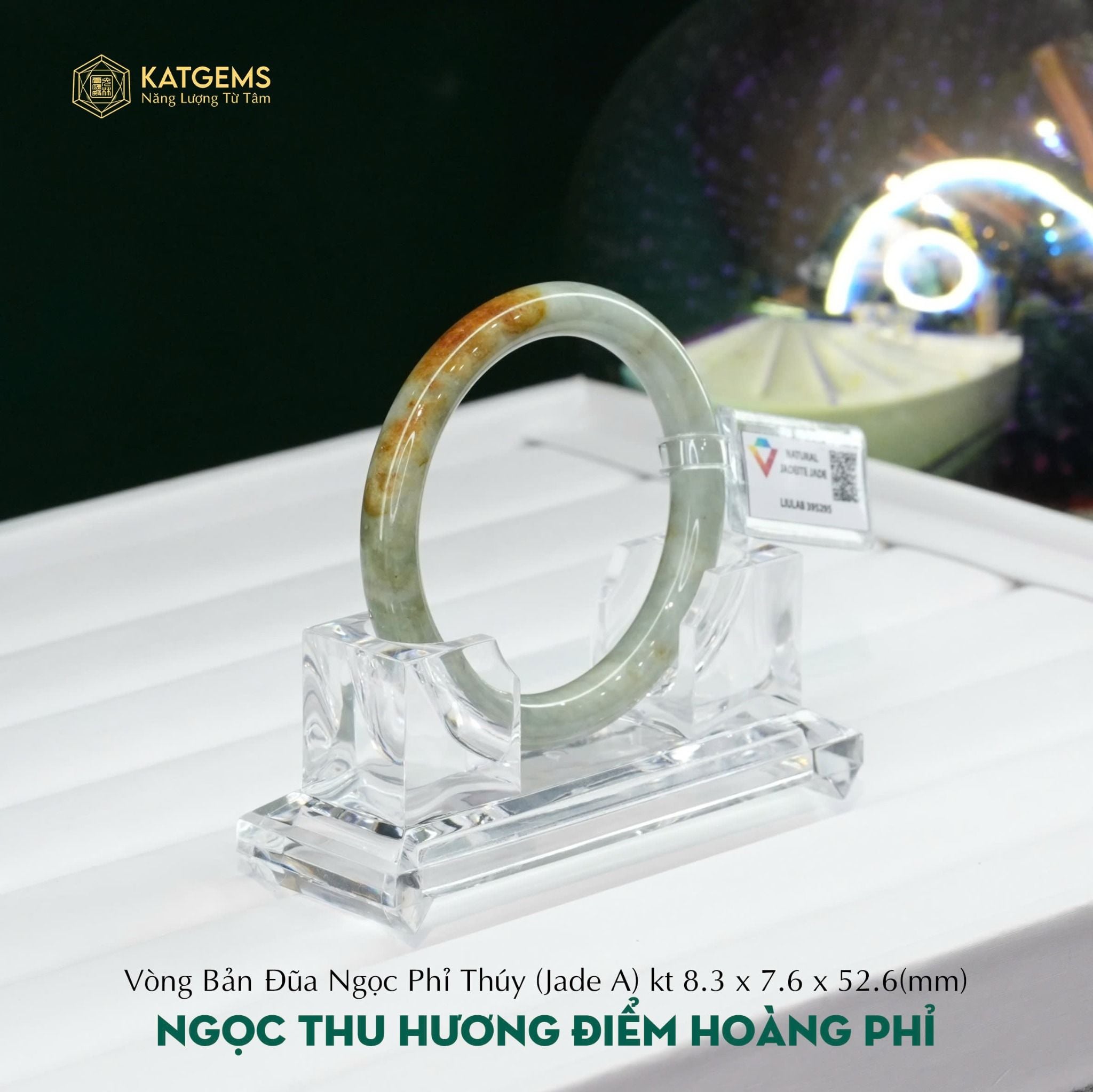 Vòng Khối Ngọc Thu Hương Điểm Hoàng Phỉ Cao Cấp Bản Đũa 8.3x7.6 Ni 52.6mm (Không Kén Mệnh) 395295