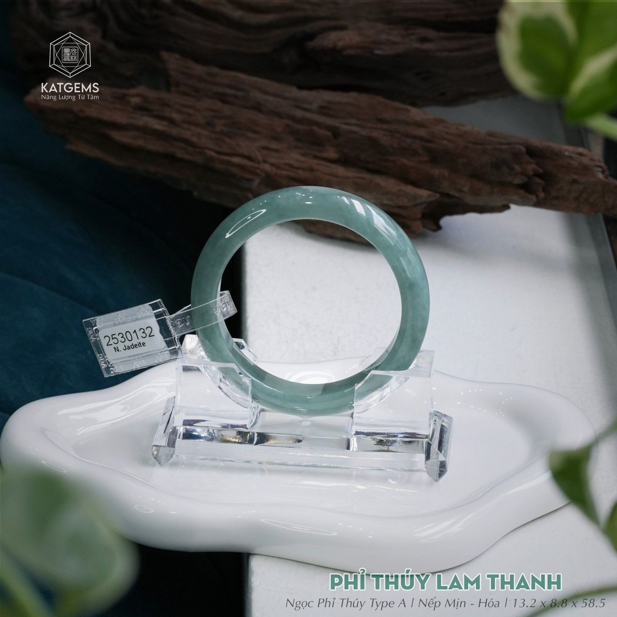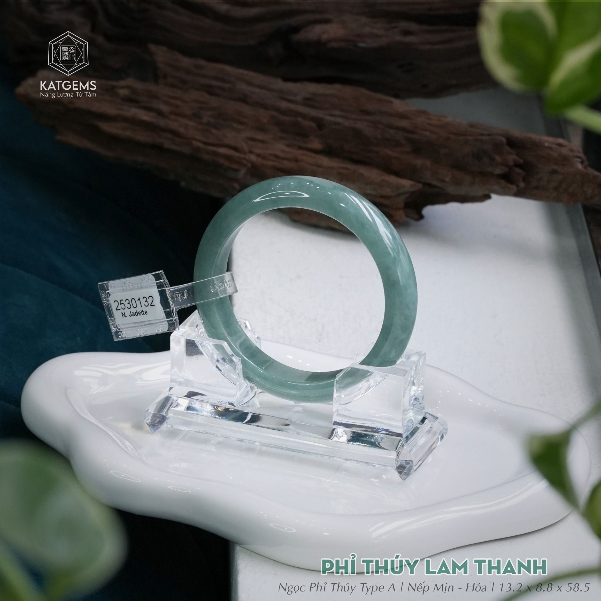 Vòng Khối Phỉ Thúy Lam Thanh Bản Hẹ 13.2 x 8.8 x 58.5 (Không Kén Mệnh) 2530132