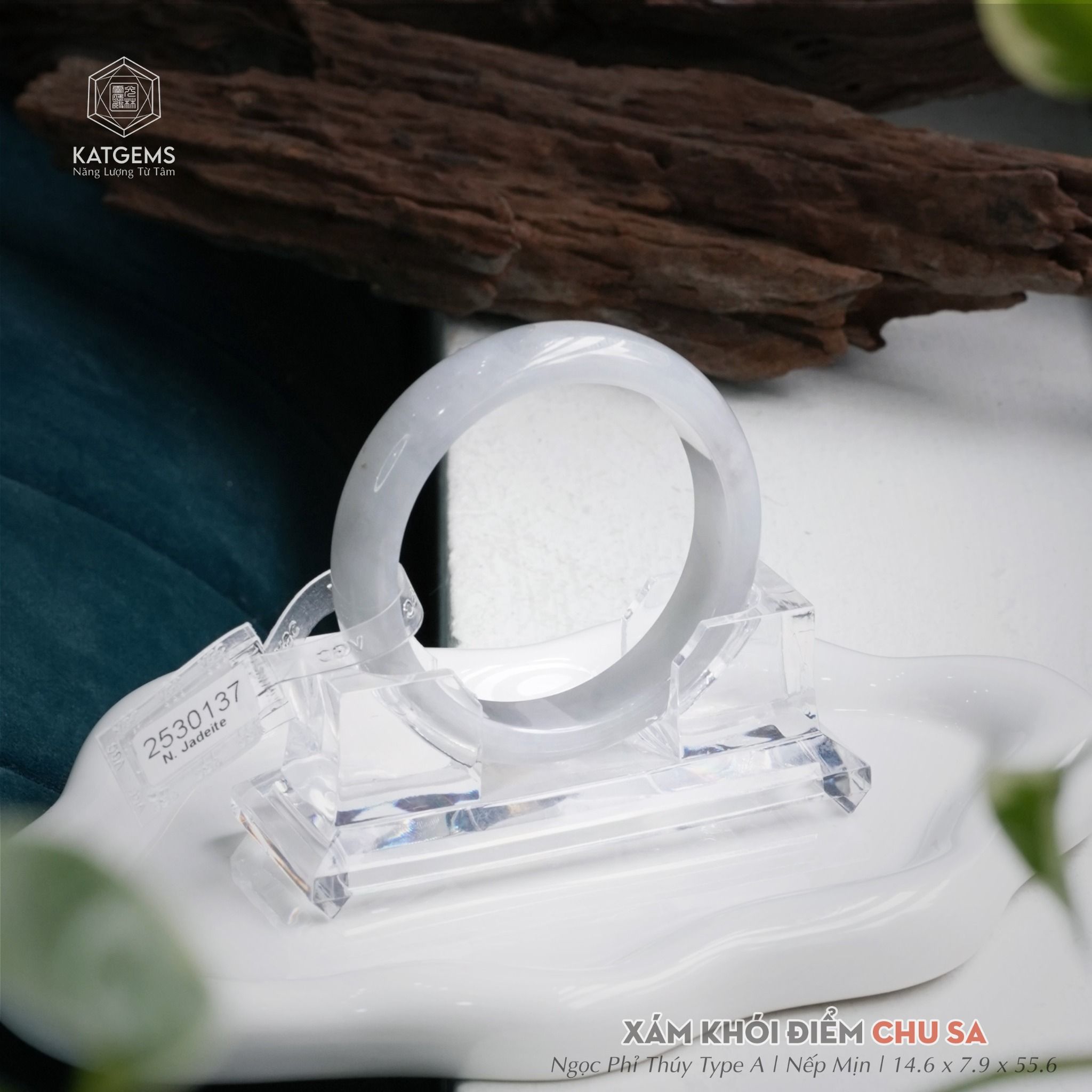Vòng Khối Phỉ Thúy Xám Khói Điểm Chu Sa Bản Hẹ 14.6 x 7.9 x 55.6 (Không Kén Mệnh) 2530137
