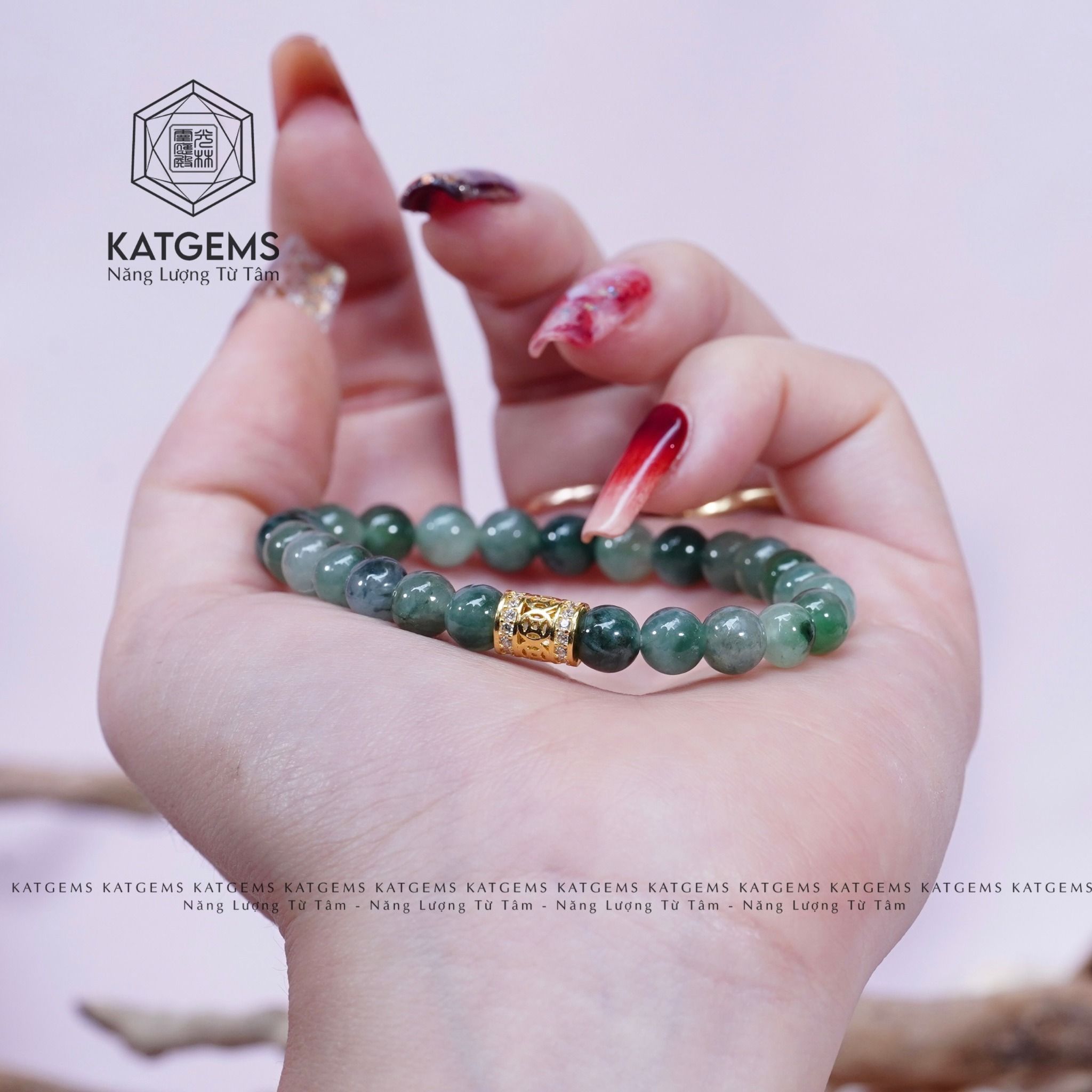 Vòng Phỉ Thúy Hoa Bay Mix Charm Trụ Kim Tiền (Không Kén Mệnh)