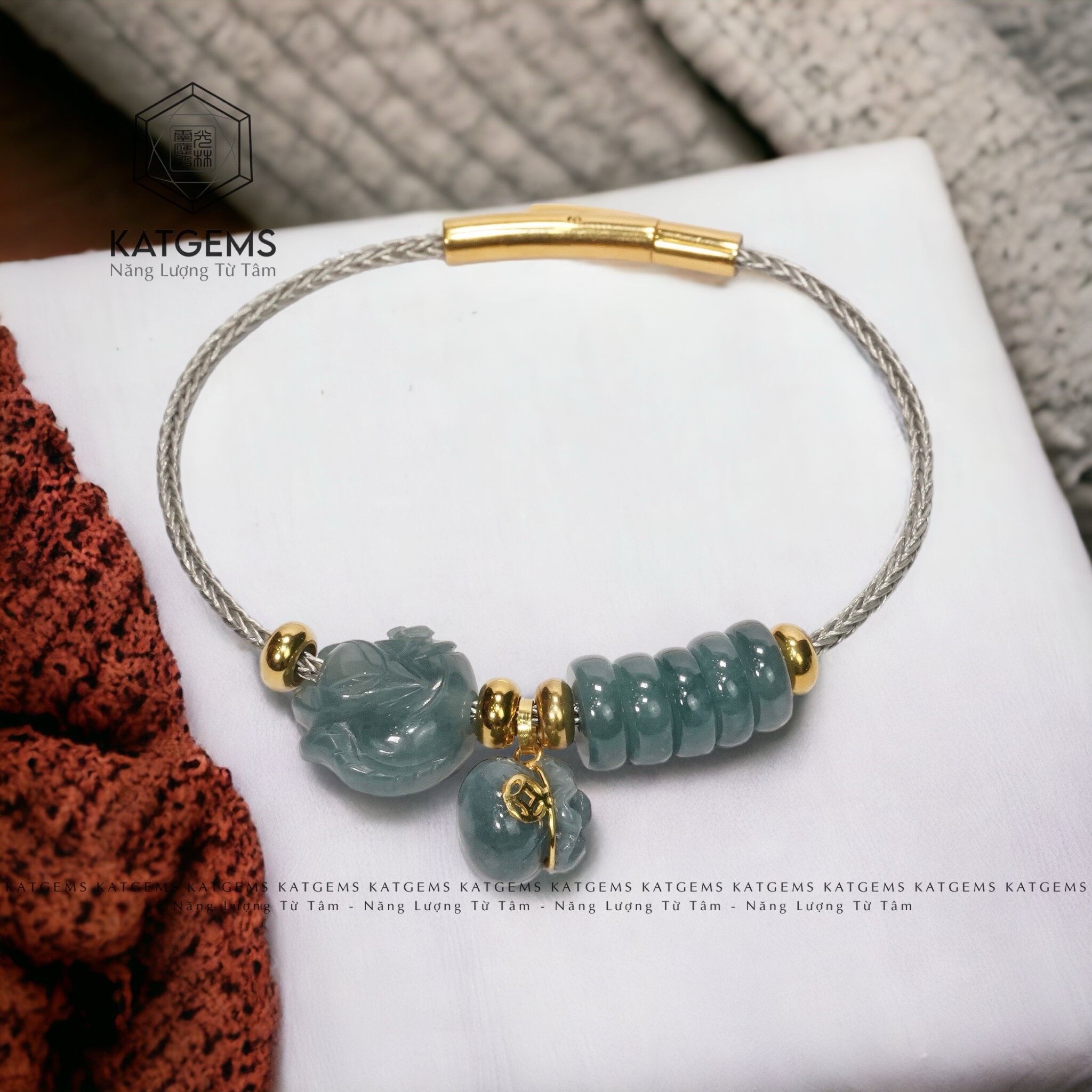 Vòng Tay Dây Cáp Ngũ Điếu Mix Túi Tiền Kim Bảo, Hồ Ly Ngọc (Không Kén Mệnh)
