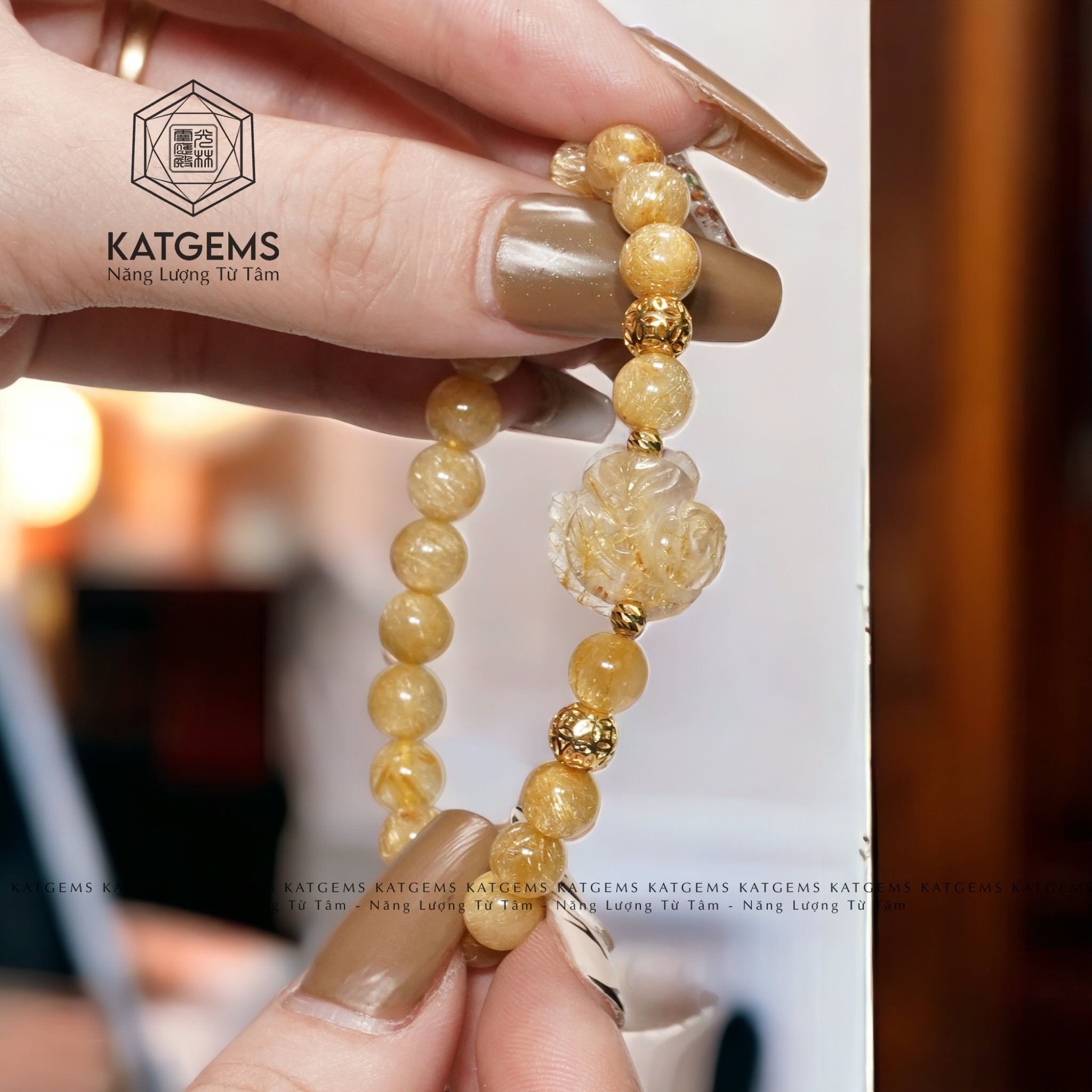 Vòng Đơn Thạch Anh Tóc Vàng 7ly Bà Hồ Ly Mix Charm Kim Tiền Vàng Trang Sức (Kim, Thổ)