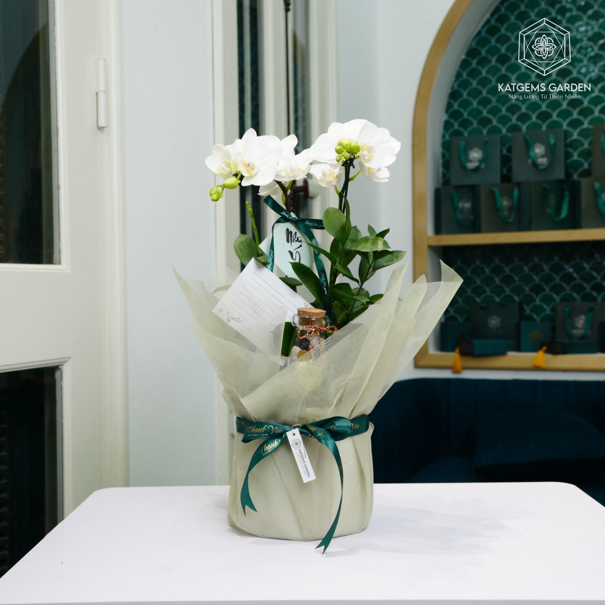 Vượng Khí Hồ Điệp Lan Mini Trắng Bọc Xanh 50cm x 13cm